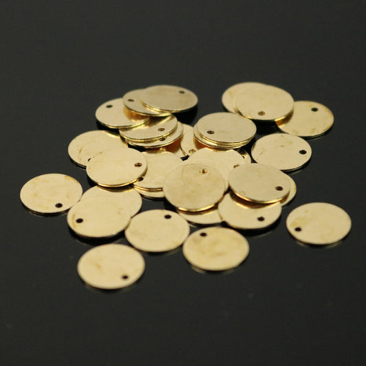 50 pcs of 13mm 1/2 inch raw BRASS Stamping Blanks with Hole - 13mm 1/2 inch 24 gauge 0.5mm thickness - GOLD Color Blank Stamping Discs Tags