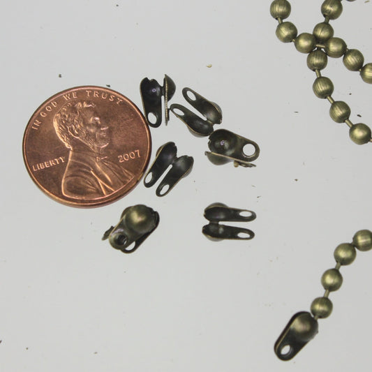 SALE Sale 100pcs of Antique Brass finished ball chain crimp type connector for 1.5mm and 1.2mm chain - BALLCON15