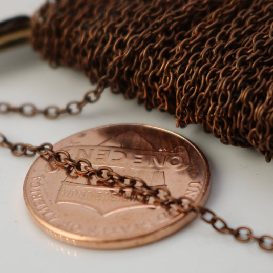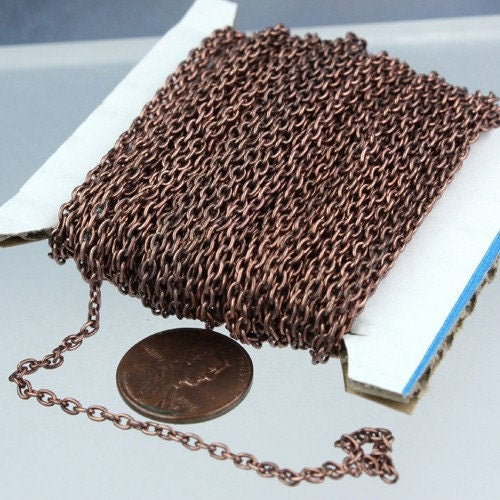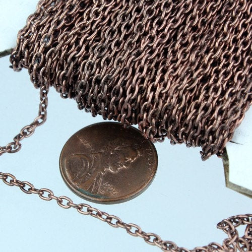 Antique Copper Chain bulk Chain, 5 ft. of Antique Copper Finished Drawn Cable Chain - 6.3x3.5mm Unsoldered Link - 6335DR
