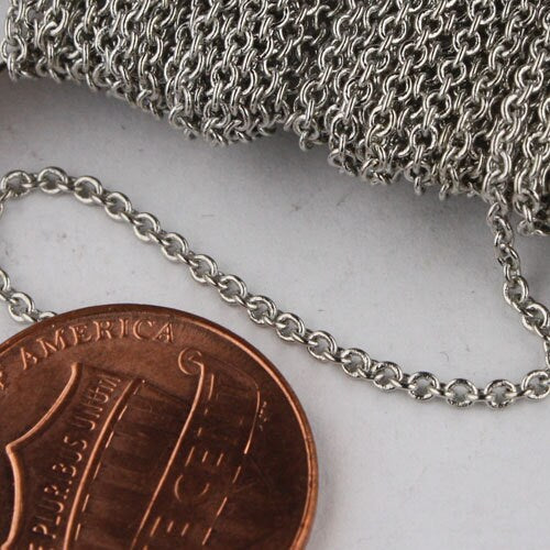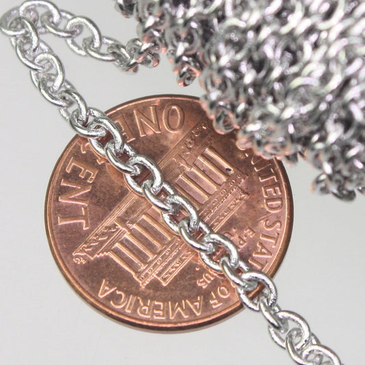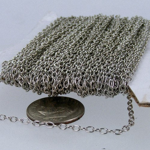 12 ft spool of Rhodium Plated Round cable chain - 3x2.2mm - unsoldered link - 322CA