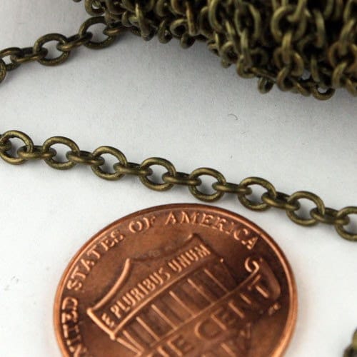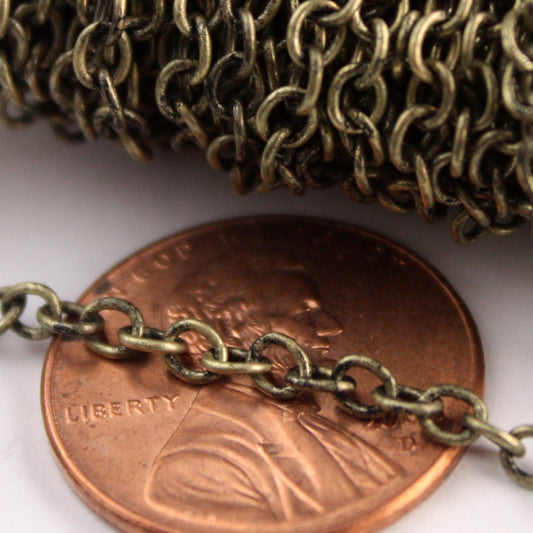 32 ft Antique Brass Cable Chain - 4x5mm 19 Gauge (0.9mm) Unsoldered Link - Antique Bronze Heavy Strong Cable Chain - 4519CA