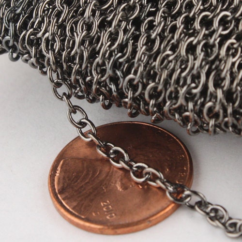 100 ft spool of Gunmetal Finished Round Soldered Cable Chain - 3.4x3.0mm SOLDERED Link - 3430S