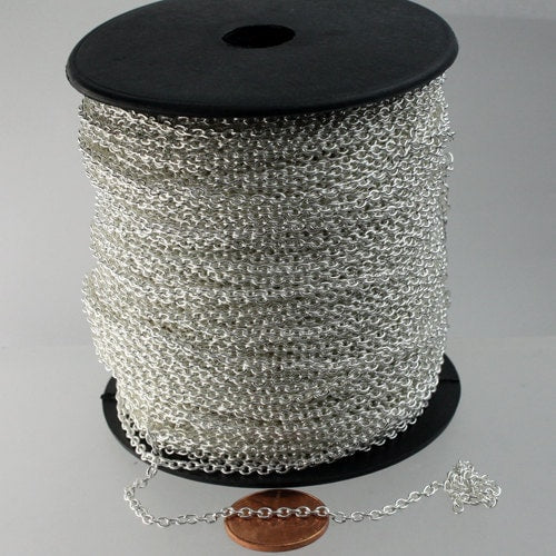 100 ft spool of Silver Plated Round cable chain - 3.0x2.1mm - Sturdy Unsoldered link - 3021CA