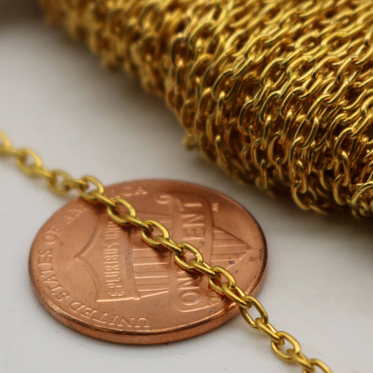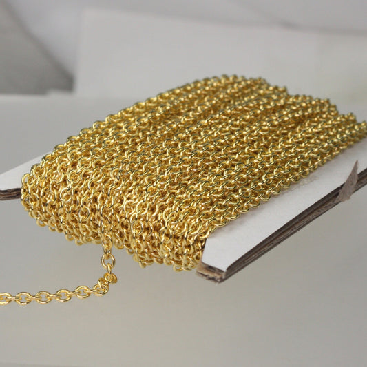 SALEsale 24K Gold Tone Plated Cable Chain Bulk, 50 ft of Round Cable Chain 3x2.2mm 0.6mm wire - Unsoldered - 322CA