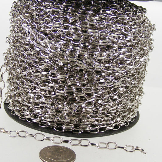 32 ft. of Rhodium Plated SOLDERED Thick Fancy Cable Chain - 3x3.5mm 21G Thickness Wire SOLDERED Link - 335S