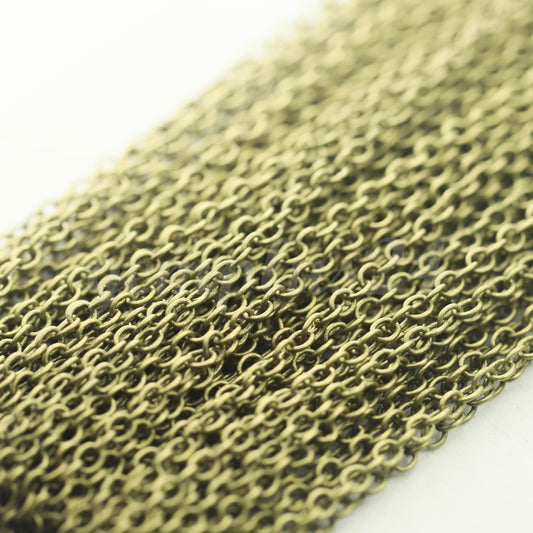 Antique Brass Chain, 32 ft of Antiqued Brass (Dark) Round Cable Chain - 2x2.5mm SOLDERED link, Antique Bronze necklace Chain,Bulk - 225S