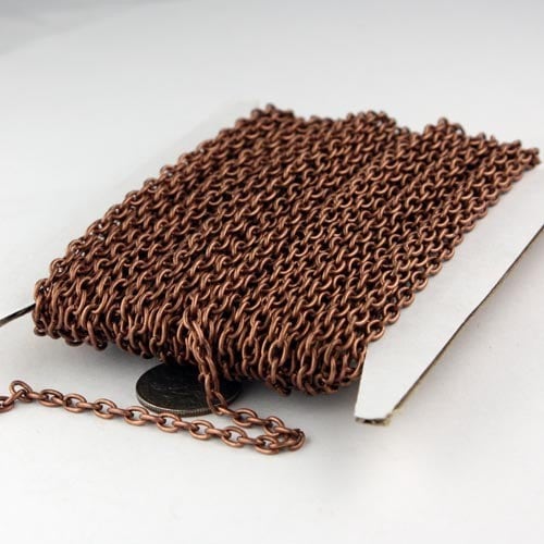 32 ft Antique Copper Cable Chain - 4x5mm 19 Gauge (0.9mm) Unsoldered Link - Heavy Strong Cable Chain Bulk Wholesale - 4519CA