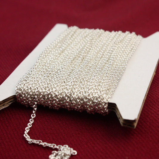 Sterling Silver Plated Chain bulk Chain, 32 ft of Round Soldered Chain Cable Chain - 2x2.5mm SOLDERED link - Necklace Wholesale chain - 225S
