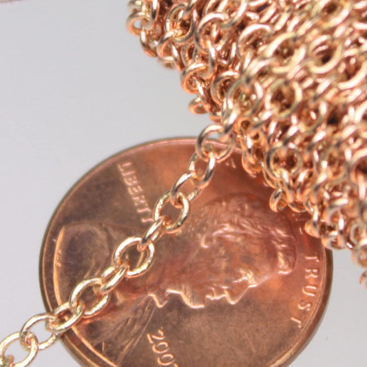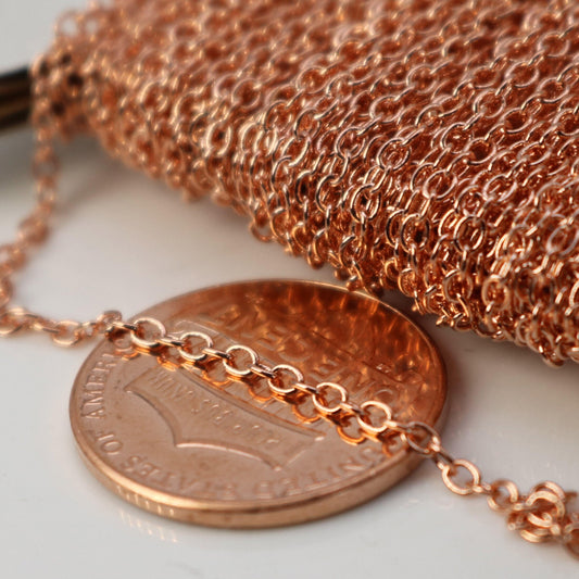 32 ft of Champagne Gold (Pinky Gold) Plated Round Soldered Chain Cable Chain - 2x2.5mm SOLDERED link - 225S