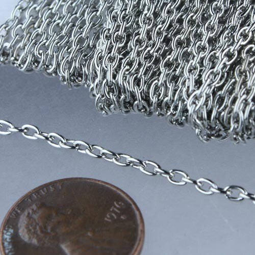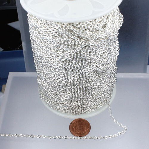 50 ft spool of Rhodium Plated Round cable chain - 3.x2.2mm - unsoldered link - 322CA