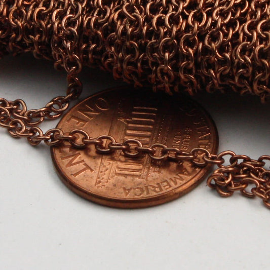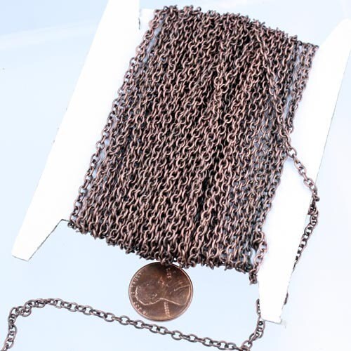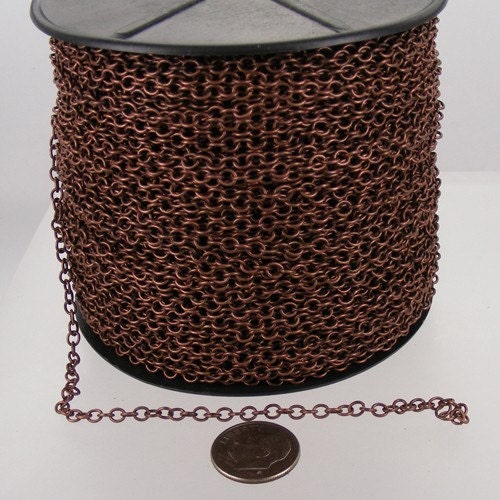 Antique Copper Chain Bulk Chain, 32 ft of Antique Copper Finished Cable Chain - 3.8x2.7mm 0.7mm Unsoldered Link - 3827CA