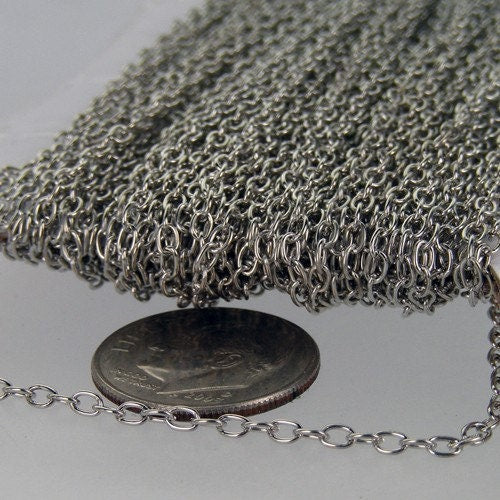 Rhodium Plated Chain Bulk Chain, 32 ft of Tiny Antique Silver Chain Cable - 2.0x1.4mm SOLDERED Chain Necklace Dainty Delicate Chain - 2014S