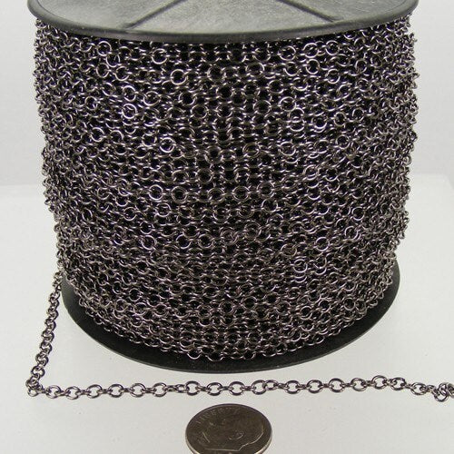 300 Ft Gunmetal Round SOLDERED Cable Chain - 2.6x2.1mm SOLDERED Link - Ship from California USA - 2621S