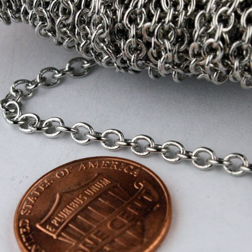 Rhodium Plated Cable Chain Bulk, 300 ft of Antiqued Silver Round Cable Chain 3x2.2mm 0.6mm wire - 322CA