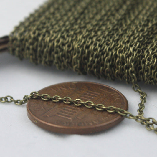 3 ft of Antiqued Brass Round Soldered Chain Dainty Delicate Cable Chain - 2x2.5mm SOLDERED link - Necklace - 225S