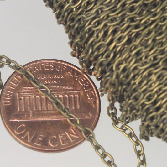 Antique Brass Chain, 50 ft Antique Bronze Round cable chain - 3x2.2mm unsoldered link - Bulk Necklace Chain - 322CA