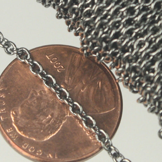 10 Ft Gunmetal Round SOLDERED Cable Chain - 2.6x2.1mm SOLDERED Link - Ship from California USA - 2621S