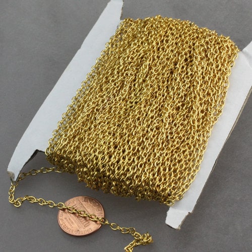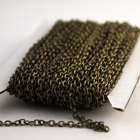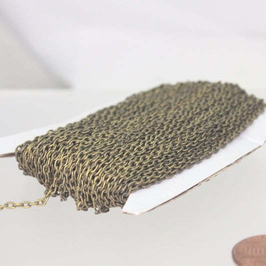 32 ft of Antiqued Brass Round Soldered Chain Dainty Delicate Cable Chain - 2x2.5mm SOLDERED link - Necklace - 225S