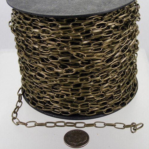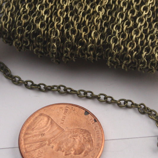 Antique Brass Chain, 50 ft spool of VINTAGE Antique Bronze Oval Round cable chain - 3x2.2mm unsoldered link - 322CA
