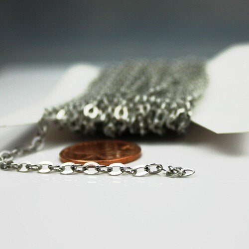 100 feet Rhodium Plated Chain bulk Antiqued Silver Round Soldered Chain Cable Chain - 2x2.5mm SOLDERED link - Necklace Wholesale - 225S