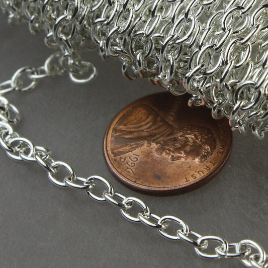 10 ft Sterling Silver Plated Cable Chain - 4x5mm 19 Gauge (0.9mm) Unsoldered Link - Heavy Strong Cable Chain Bulk Wholesale - 4519CA