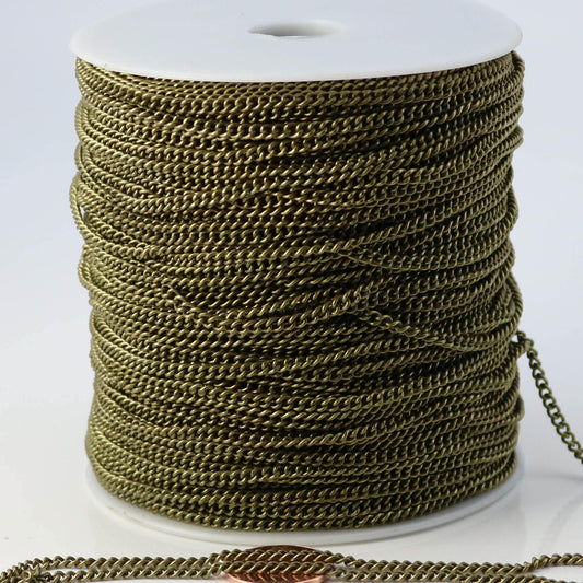 10 ft of Antique Brass Plated SOLDERED FACET sturdy Chunky Curb Chain - 2.7mm width Solder link - with Free Jumpring (10pcs) - 2.7F