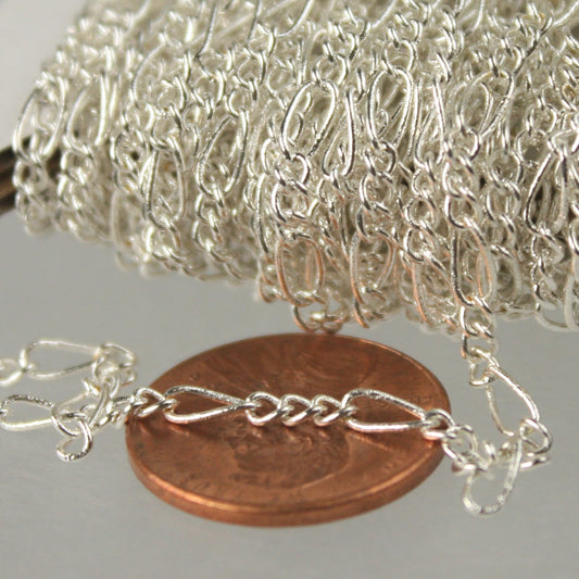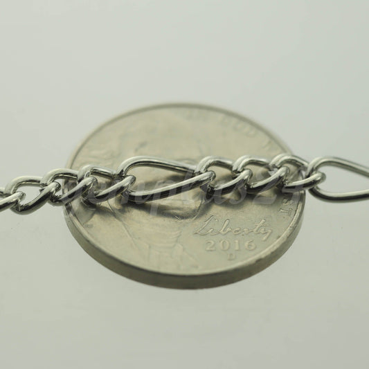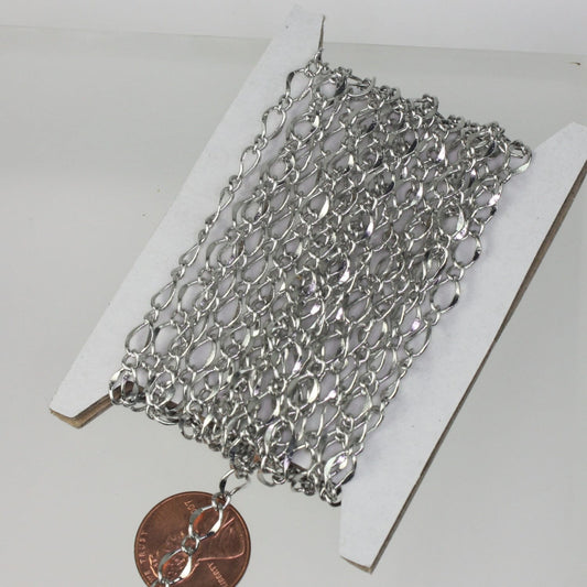 50 feet Rhodium Plated Big Large Long and Short Figaro chain - 8x3.2mm Links 1.0mm wire