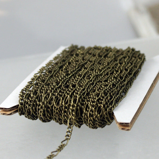 Antique Bronze Figaro Chain Bulk, 10 ft. Spool of Antique Brass SOLDERED Facet Sturdy figaro chain 1.8mm - Necklace Bracelet Wholesale Chain