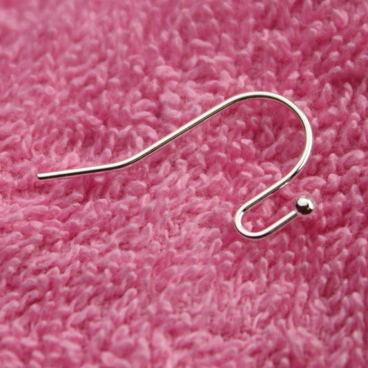 10 Sterling SILVER Ear Wires Earrings hooks Earwires with Ball - 10x22mm 21Gauge 0.7mm Wire - 5 Pair Fish hook ear wire - ss744