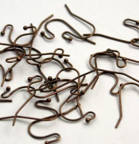 50(25pr) Ball End Earring Ear Wire - Antique Copper Plated on Solid Brass Ear Wires, French hook style, ball end - ERBall