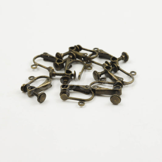 10 pcs of Antique Brass Finished on Brass Screw Back Earring Clips - 18x14mm