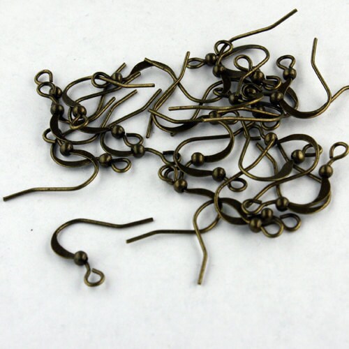 100 pcs of Antique Brass Finished flat fish Hook with ball Earwire 19X14mm