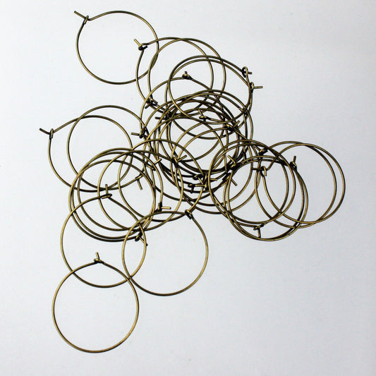NEW Wholesale 100 pcs - 25mm 1 inch Antique Brass Plated Wine Glass Hoops Simple hoop earwires - Ship from California USA