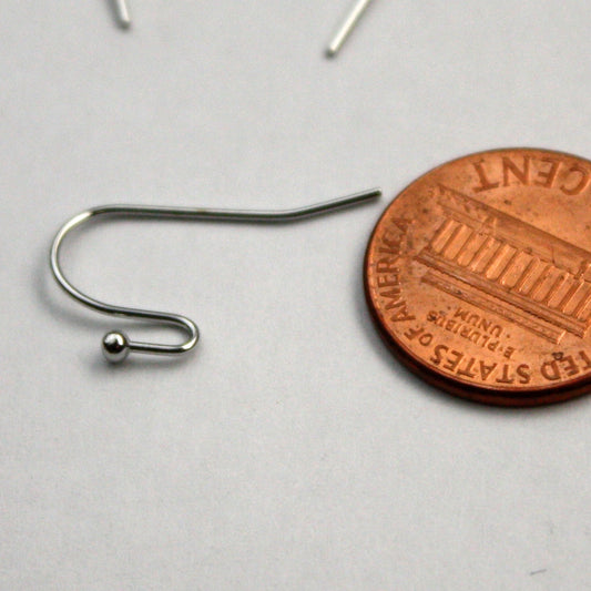 50(25pr) Ball End Earring Ear Wire - Rhodium Plated on Solid Brass Ear Wires, French hook style, ball end - ERBall