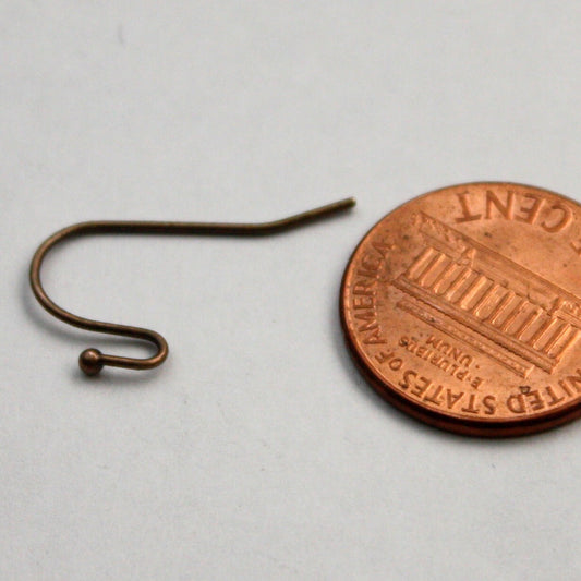 50 pcs - 25 pair of Antique Copper ear wires, French hook style, ball end - ship from California USA