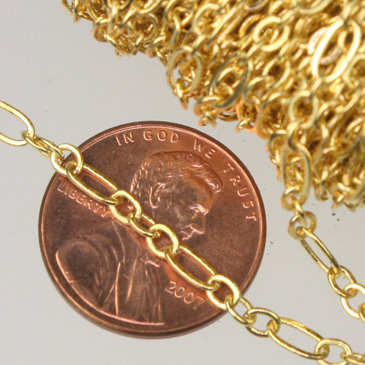 32 feet of Gold Plated Chain bulk, (1 and 1) Long and Short Chain SOLDERED Chain - 6x3mm 4x3mm Soldered 3429LS11