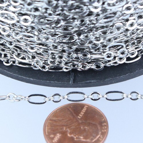 300 ft Rhodium Plated Bulk Chain, Long and Short (Small 3 and 1) SOLDERED Necklace Chain - 4.5x2.5mm 2.9x2.6mm Soldered - 317LS31