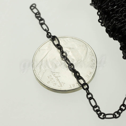 New 3 ft Black Finished Bulk Chain, Long and Short (Small 1 and 1) SOLDERED Wholesale Chain - 4.5x2.5mm 2.9x2.6mm Soldered - 317LS11