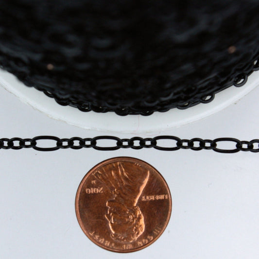 Black Bulk Chain, 10 ft of ( 3 and 1 ) Long and Short Chain Flat Cable Chain Necklace Chain 6.3 N 4mm - SOLDERED Chain 3429LS31