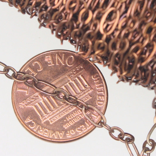 Antique Copper Bulk, 10 ft of ( 3 and 1 ) Long and Short Chain Flat Cable Chain Necklace Bracelet Chain 6.3 N 4mm - SOLDERED 3429LS31