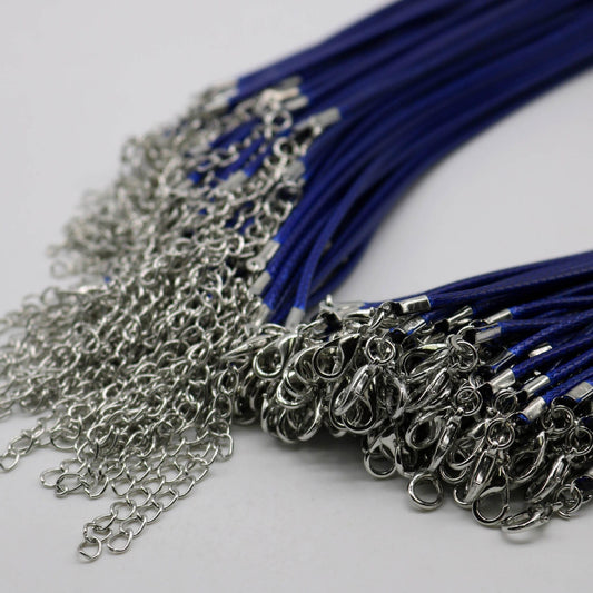1/5/10/25/50/100pcs 2.0mm 18-20 inch adjustable compressed cotton quality necklace cord - Dark Blue
