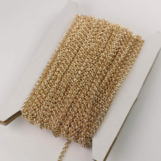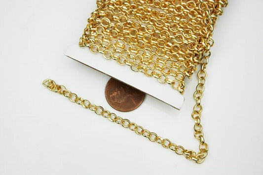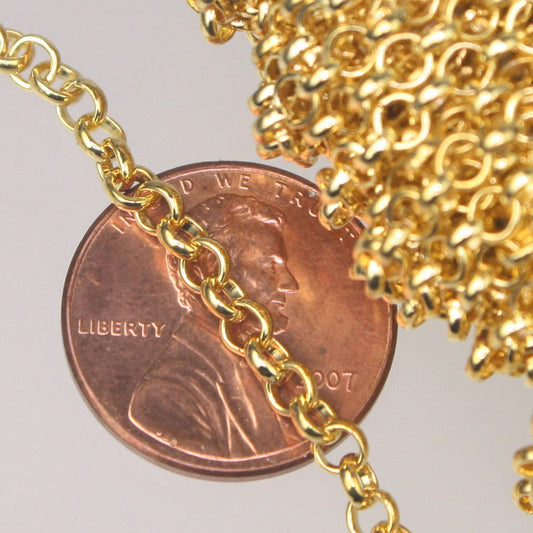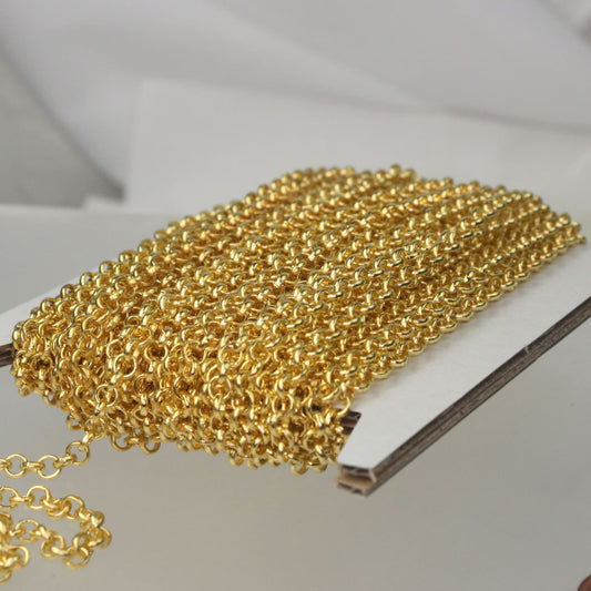 Gold Plated Rolo Chain bulk, 12 ft spool of ROLO cable chain - 3.2mm Unsoldered Links - Bulk Jewerly Chain - 3.2ROLO