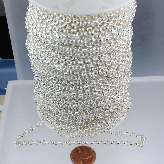 12 feet Sterling Silver Plated Rolo Chain bulk, Cable Chain 3.2mm - Unsoldered Links - Bulk Jewerly Chain