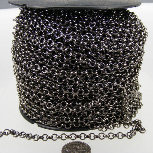 100 feet of Gunmetal Rolo Rollo Chain bulk, - 4.7mm - Unsoldered Links - Necklace Bracelet Wholesale Bulk Jewelry Chain - 47ROLO