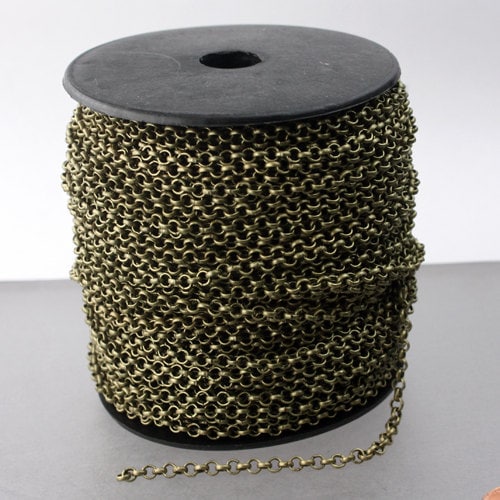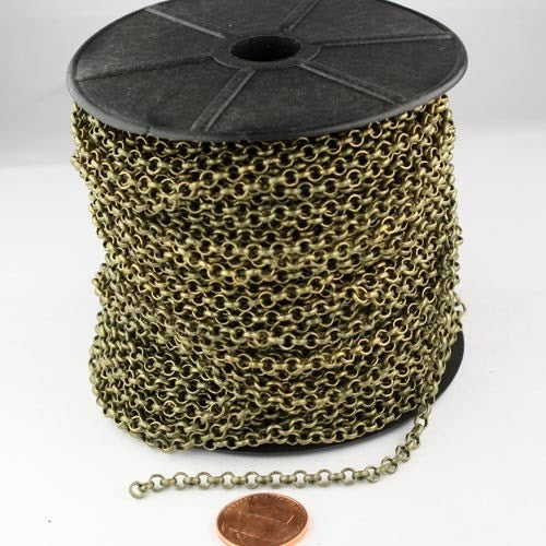 Antique Brass Rolo Chain bulk Chain, 32 ft of Rolo Bronze Cable Chain 3.2mm - Unsoldered Links - Bulk Jewelry