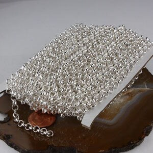 Sterling Silver Plated Rolo Chain bulk, 12 ft of Rolo Cable Chain 4.7mm - Unsoldered Links - - 47ROLO