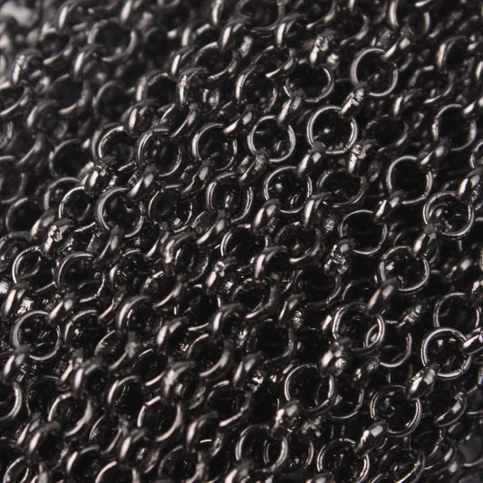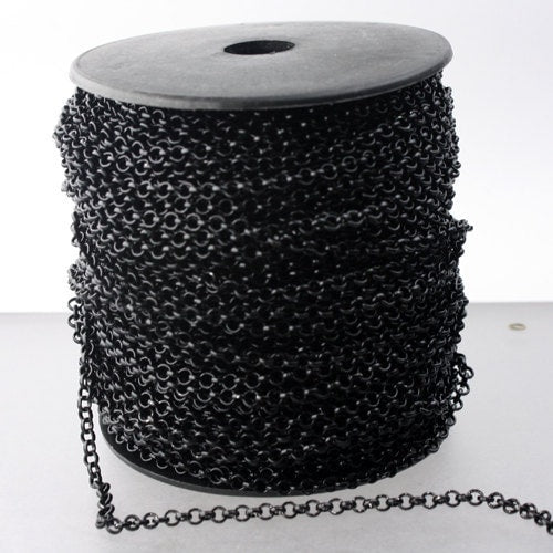 Black Rolo Chain bulk Chain, 32 ft of Rolo SOLDERED Cable Chain 3.1mm - Soldered Links - Wholesale - 31BL