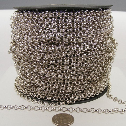 Sterling Silver Plated Rolo Chain bulk, 100 ft of Rolo Cable Chain 2.5mm - Unsoldered Links - Wholesale Bulk - 25ROLO