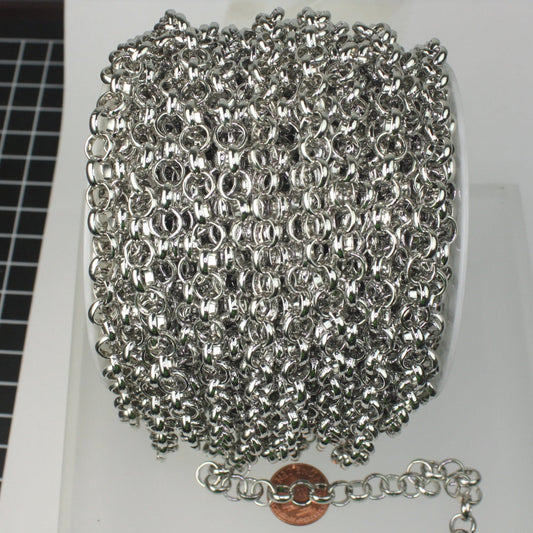 Sterling Silver Plated Rolo Chain bulk, 32 ft of Rolo Cable Chain 4.7mm - Unsoldered Links - Wholesale - 47ROLO