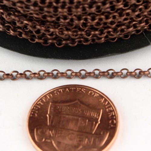 Antique Copper Rolo Chain bulk Chain, 32 ft of Antique Copper SOLDERED Rolo Chain - 3.1mm Soldered Links - 31BL